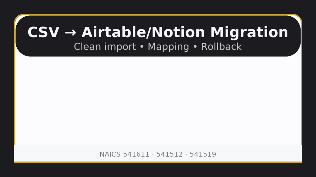 CSV → Airtable/Notion Migration (Clean import • Mapping • Rollback)